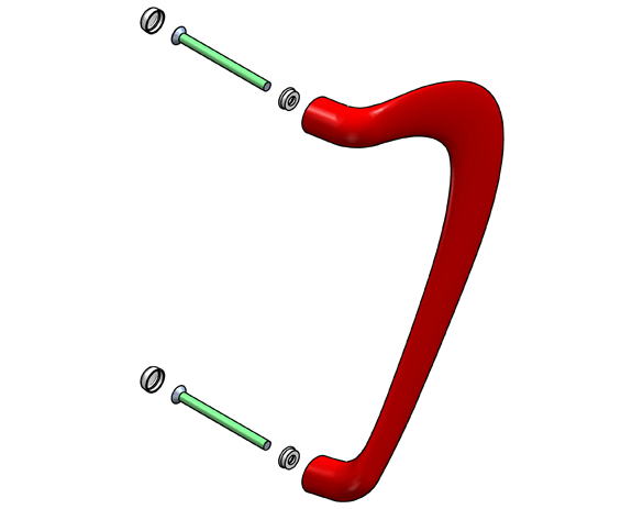 Tirador delta individual Izquierda para montaje en puerta derecha con los accesorios para el montaje en puerta derecha.
