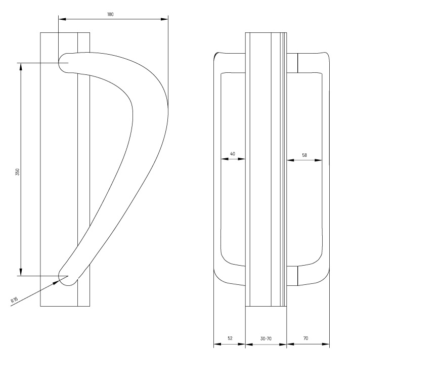 - Anchura del perfil para el conjunto: 30-70 mm (con la tornillería suministrada).