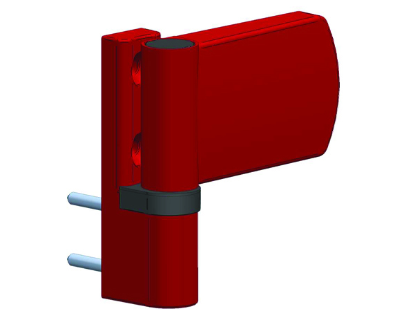 Bisagra de dos cuerpos para puertas de PVC de apertura interior y exterior para fijar por el frente.