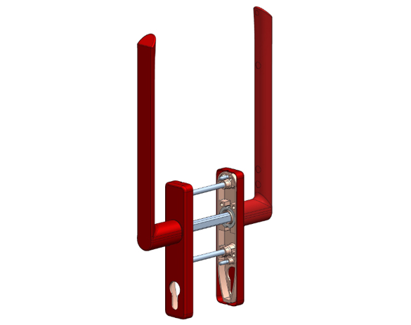 Manilla para apertura desde ambos lados con llave para herraje de corredera elevable.