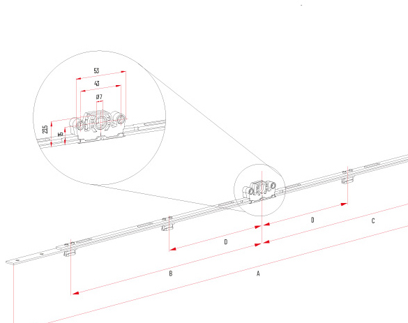 Cierre corredera con 2 bulones para series perimetrales de 1.000 mm de longitud para aguja de 7,5 mm y...