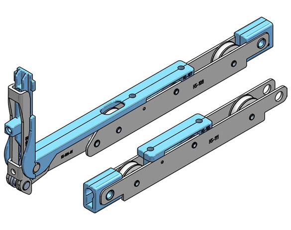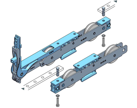 Conjunto de carros principales para corredera elevable HS-300 que soportan pesos de hasta 300 kg.