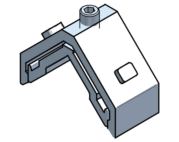Escuadra de extrusión de aluminio con tornillería en acero inoxidable.
