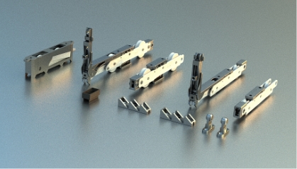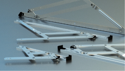 Tope de zanca para unión travesaños de cámara europea con tornillería en acero inoxidable.