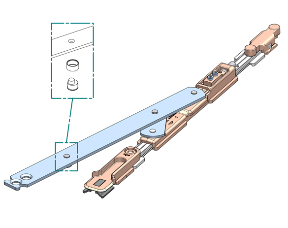 Nueva versión de compás con varias piezas pre-remachadas, para mayor rapidez de montaje y regulación de la presión de cierre mediante excéntrica.
