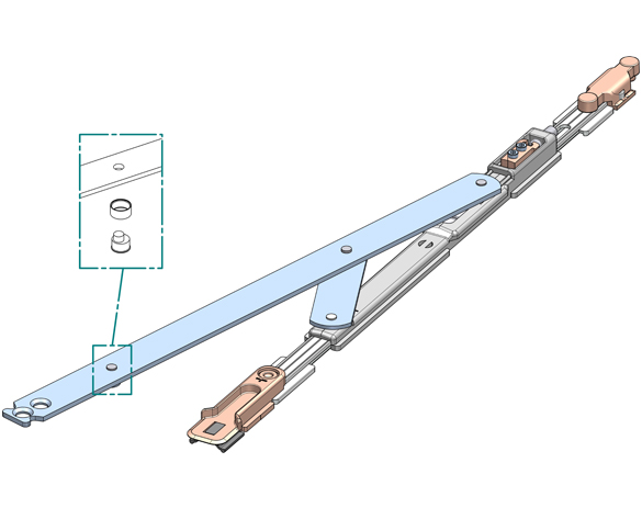 Nueva versión de compás con varias piezas pre-remachadas, para mayor rapidez de montaje y regulación de la presión de cierre...
