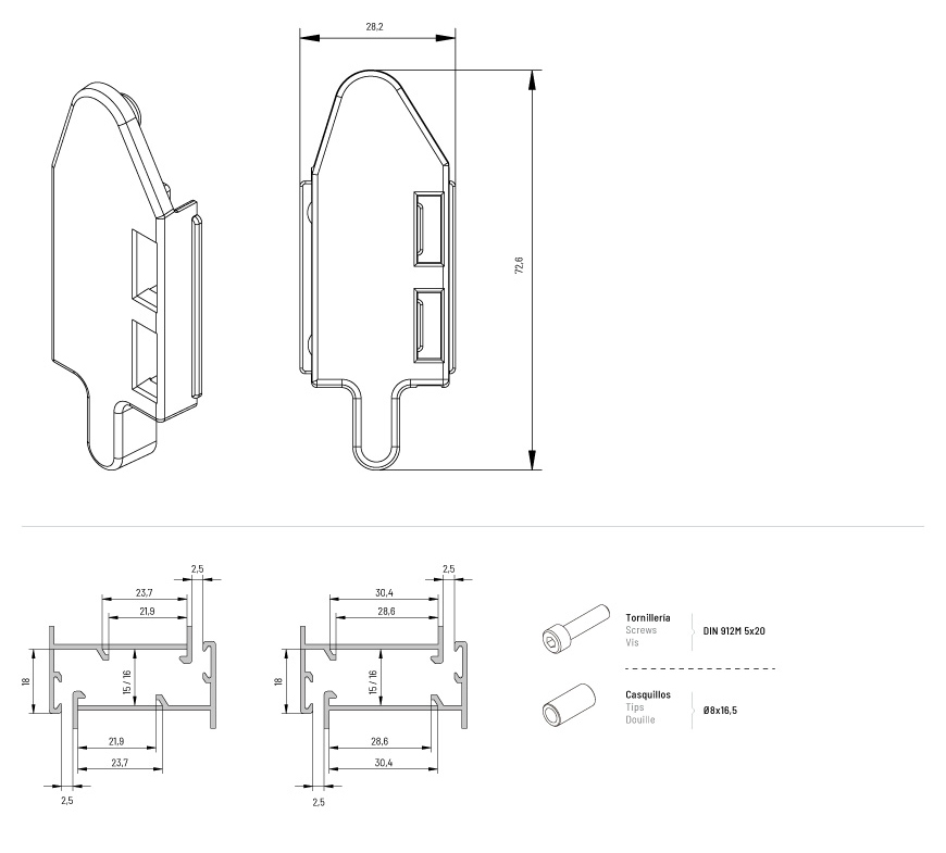 - Se adapta a los canales estrecho y ancho serie 400 y 600.
